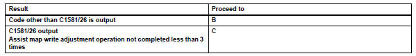 If dtc c1581/26 is output, turn the ignition switch off. Enter test mode again. If the dtc is output 3 times in a row, replace the power steering ecu.