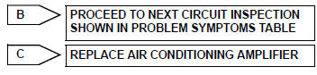 This sensor sends 1 pulse per engine revolution to the air conditioning amplifier. If the ratio of the compressor speed divided by the engine speed is smaller than a predetermined value, the air conditioning amplifier turns the compressor off, and the indicator blinks at approximately 1 second intervals.
