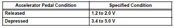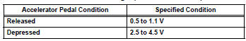 If the result is not as specified, check the accelerator pedal rod, wire harness or ecm.