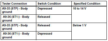 When the brake pedal is not depressed, terminal st1- is equal to the positive (+) battery voltage and terminal stp is below 1 v. When the brake pedal is depressed, the ecm cancels cruise control operation.